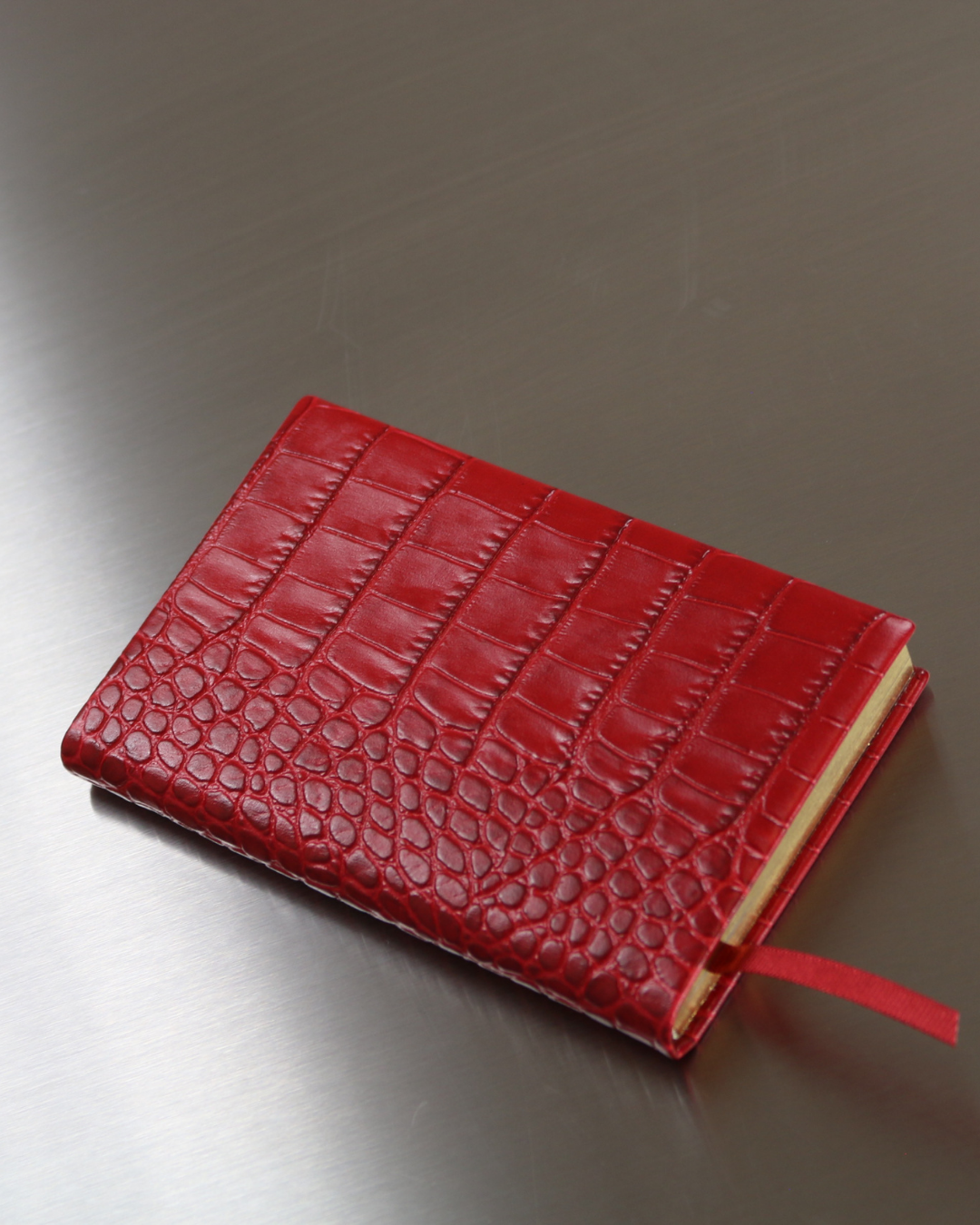 Handmade in England from supple croc-effect leather, it's filled with the label's signature featherweight paper that's lined and shaded blue to match the sleek presentation box.