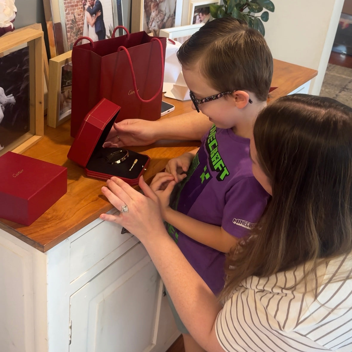 A Cartier Juste Un Clou Bracelet + a Love Necklace.