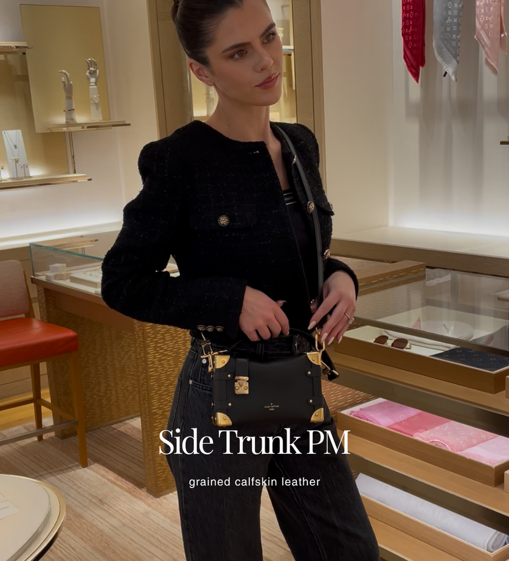 Crafted from grained calfskin leather with a gold-color S-lock and corners, the Side Trunk PM takes its inspiration from the House’s vintage trunks. A detachable leather handle and a removable and adjustable leather strap give carry options.